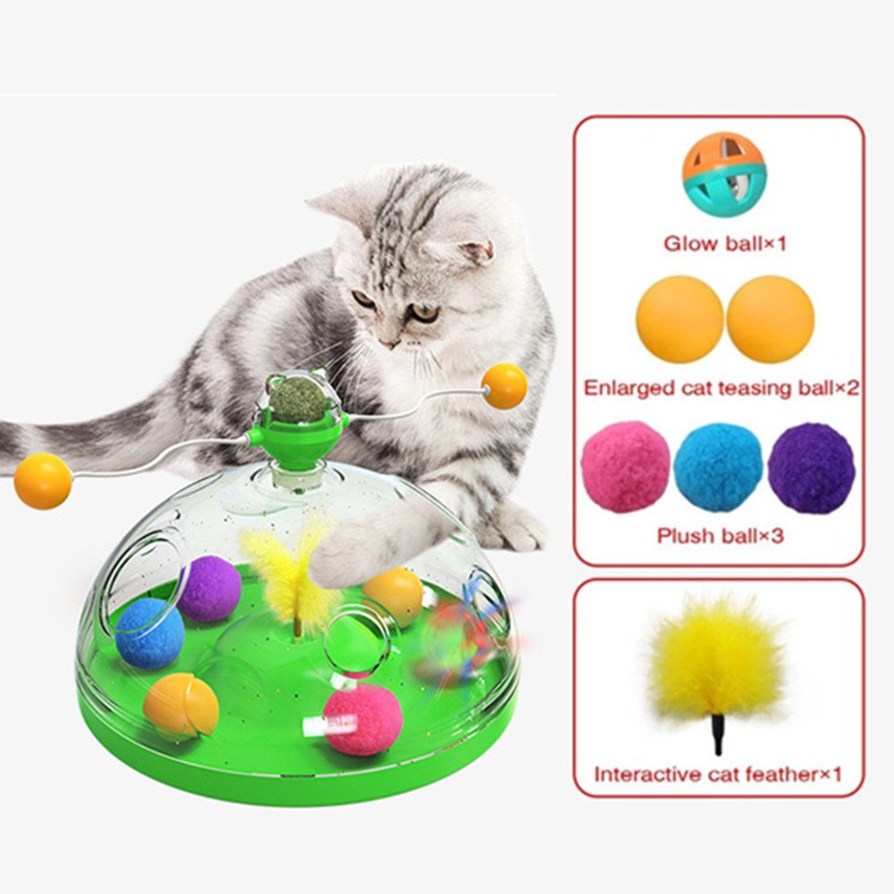 Home > Interactive Cat Toy Ball Pets Cats Puzzle Spinning Track with Plush Balls Feather Teaser Kitten Toys Game Catnip Ball Toy