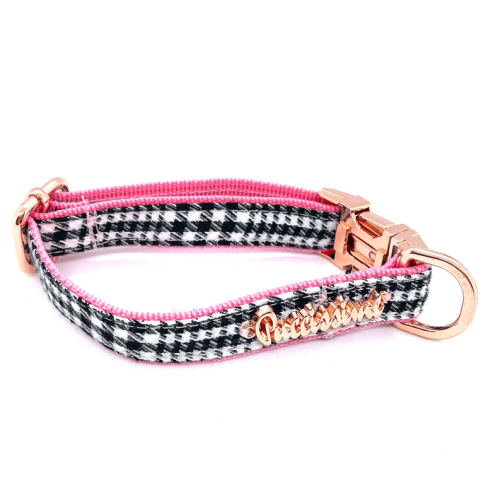 Our luxurious and classy pink "Princess" dog collar from our brand new "Princess " collection is made with high quality houndstooth and rose gold metal hardware. Not only hoomans want to feel elegant, their pooches too!