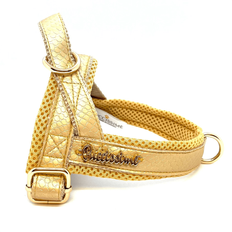 Our luxurious and classy gold "Aurelia" collar from our brand new "Aurelia" collection is made with high quality vegan leather and gold metal hardware. Not only hoomans want to feel elegant, their pooches too!