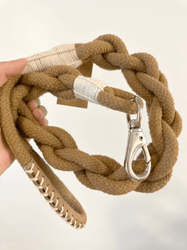 In April 2023, we embarked on a mission to create fashionable and sturdy dog leashes using our sustainable cotton. After extensive testing, we proudly present our vision of a sustainable cotton rope leash. Please note that each leash is made-to-order, resulting in longer shipping times. Product details: